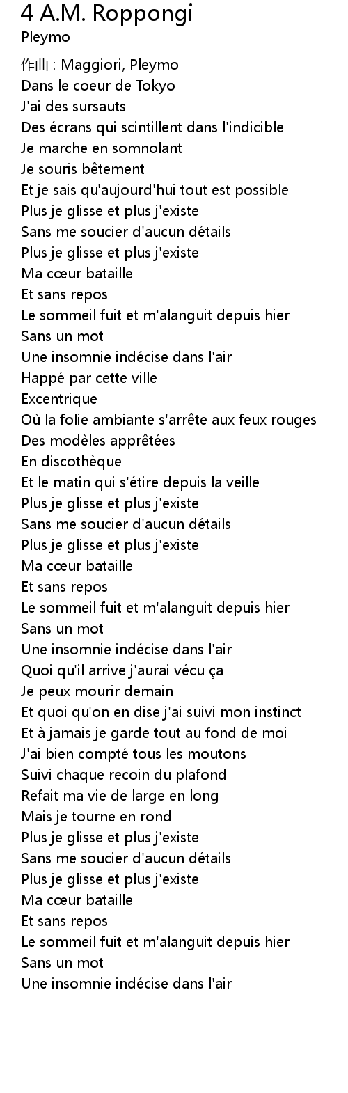 | Song | 4 A.M. Roppongi |
