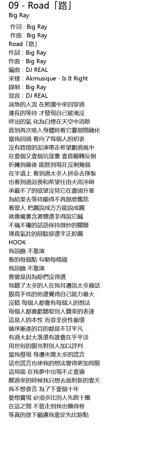 | [01:32.852] | 我聽了太多的人在我耳邊說太多廢話 |