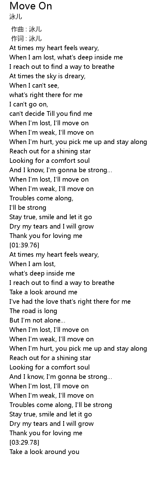 | [02:39.64] | When I'm hurt, you pick me up and stay along |