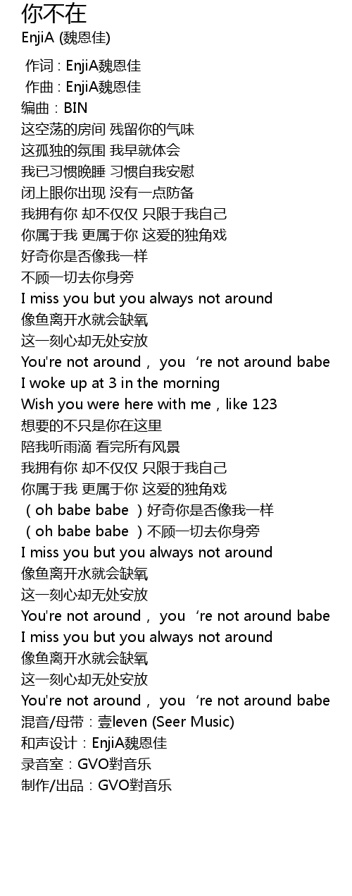 | [02:41.83] | 和声设计:EnjiA魏恩佳 |