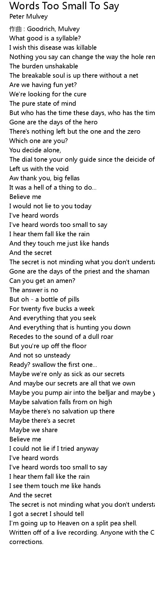 | Written off of a live recording. Anyone with the CD, feel free to submit corrections. |