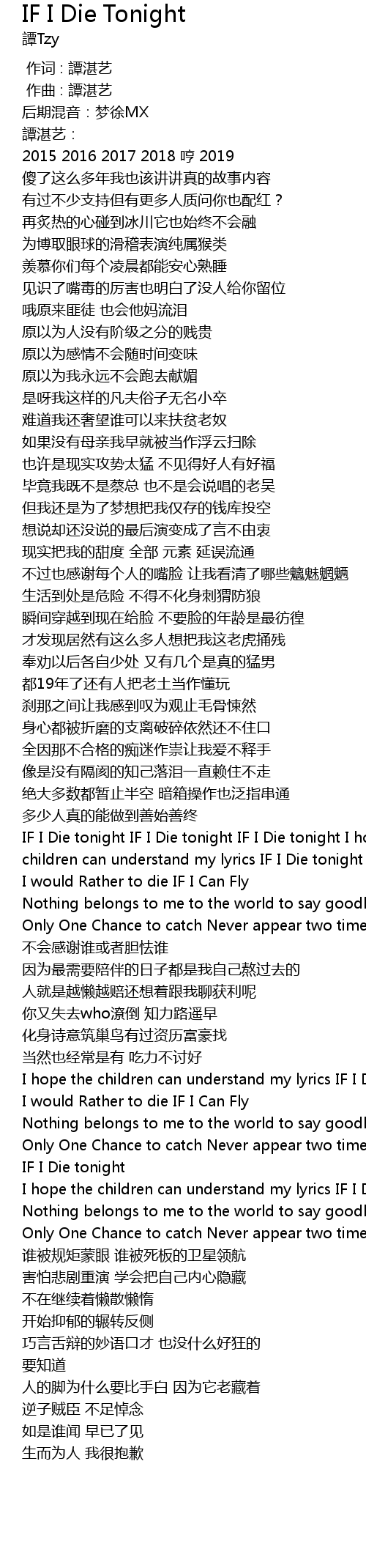 | [02:26.699] | I hope the children can understand my lyrics IF I Die tonight |