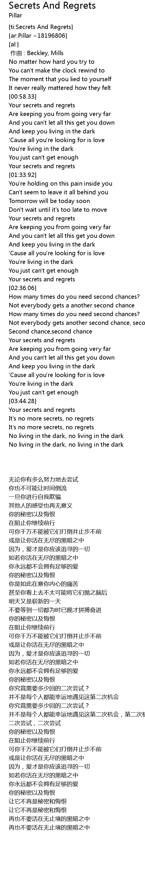 | [ti:Secrets And Regrets] | |