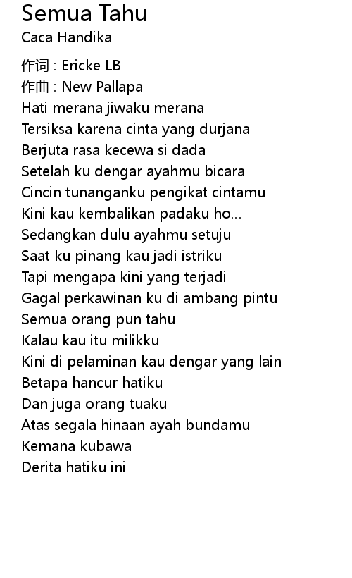 | Song | Semua Tahu |