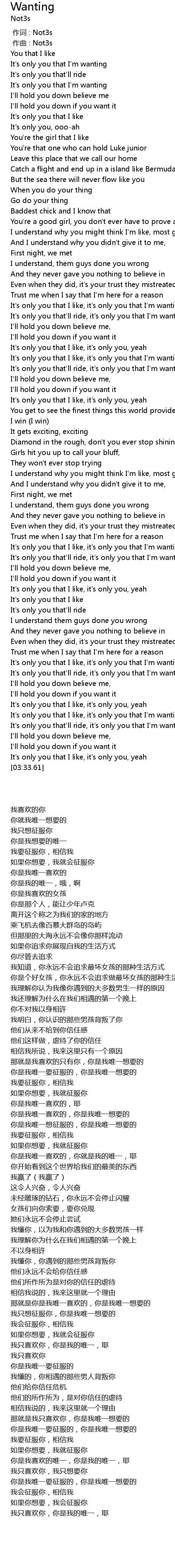 | [00:00.000] | 作词 : Not3s |