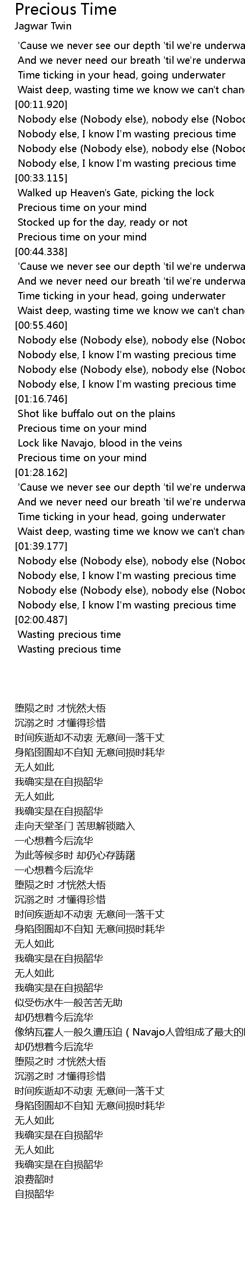 Nobody else, I know I'm wasting precious time |
