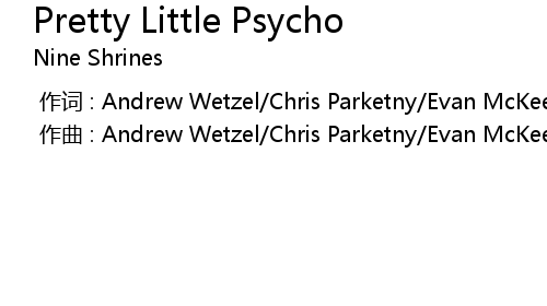 | [00:00.000] | zuo qu : Andrew Wetzel Chris Parketny Evan McKeever Andrew Baylis |