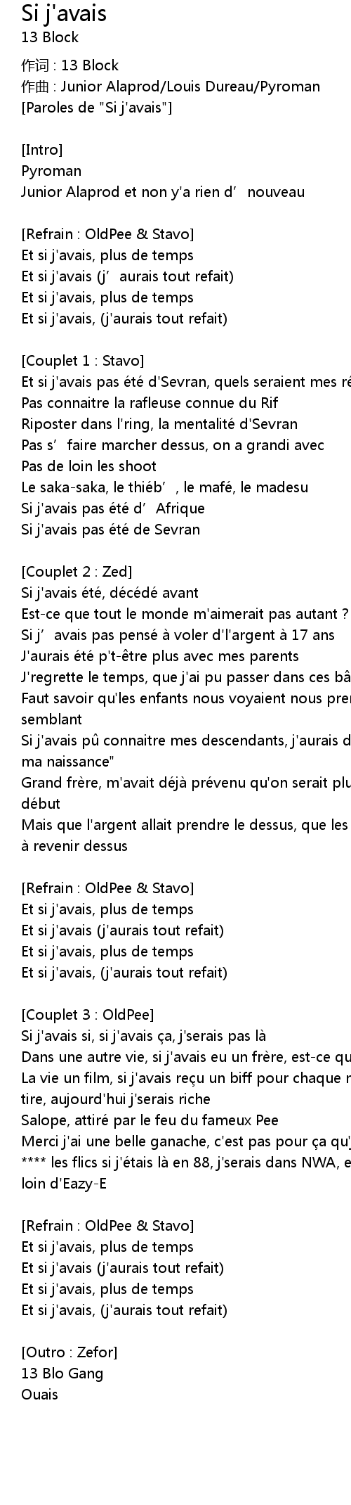 | Si j' avais si, si j' avais a, j' serais pas la | |
