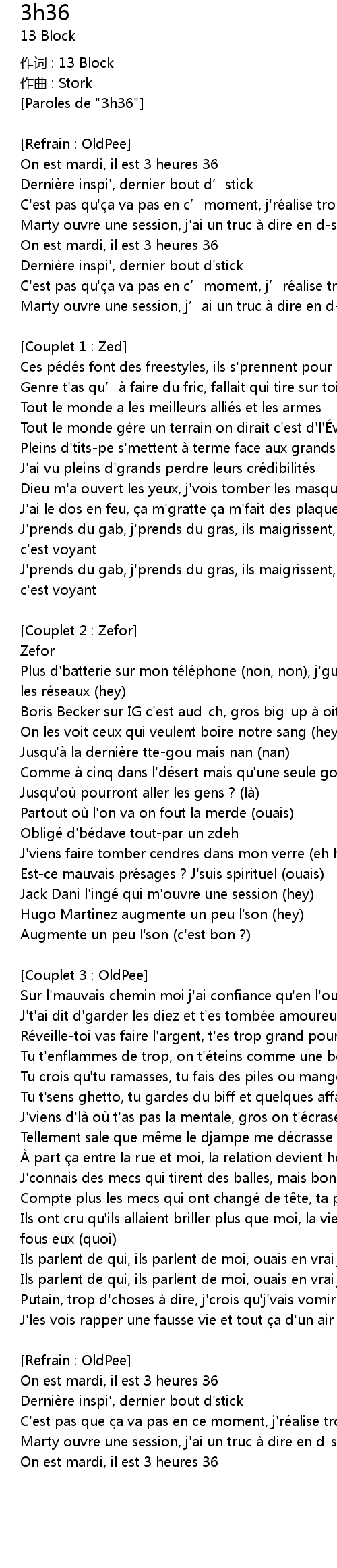 | C' est pas qu' a va pas en c' moment, j' re alise trop d' diez | |