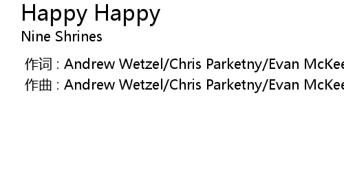 | [00:00.000] | zuo qu : Andrew Wetzel Chris Parketny Evan McKeever Andrew Baylis |