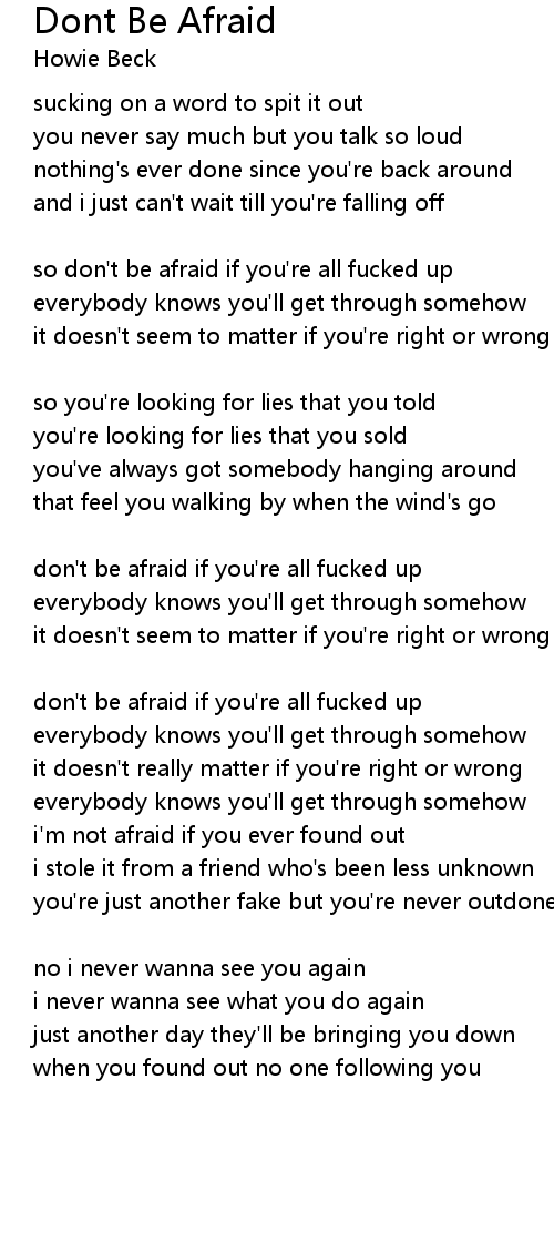 so don't be afraid if you're all fucked up |
