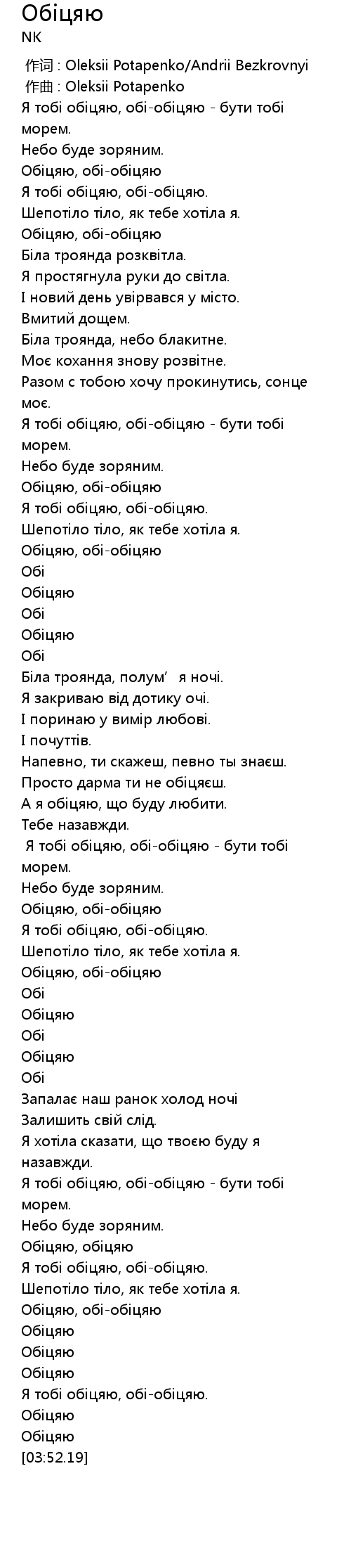作词 : Oleksii Potapenko/Andrii Bezkrovnyi |