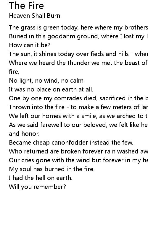 Where we heard the thunder we met the beast of mandkind - as we arched into the fire. |