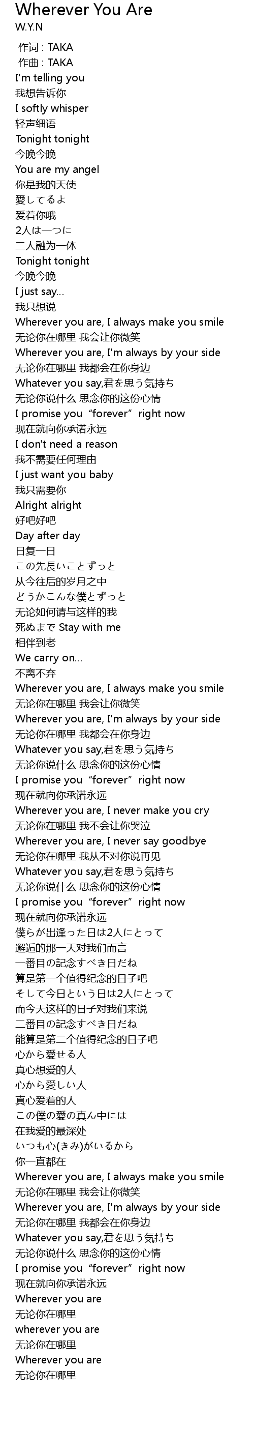 | [01:46.918] | Wherever you are, I'm always by your side |