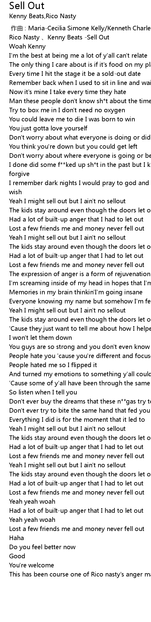 | [00:03.833] | Rico Nasty Kenny Beats Sell Out |