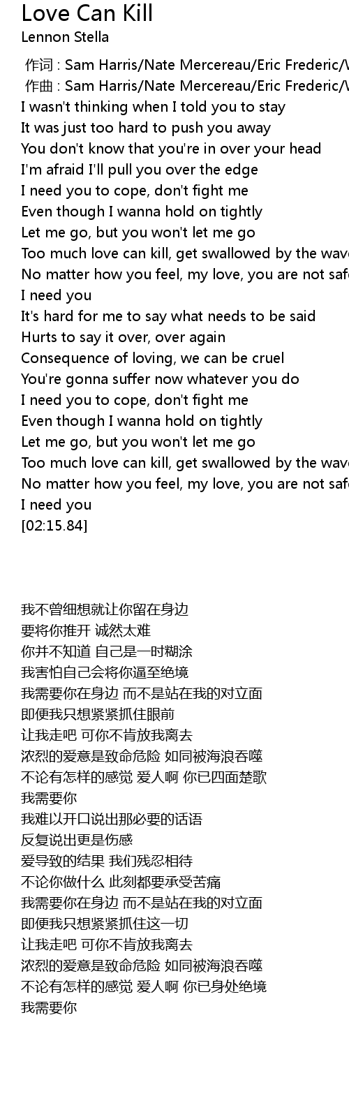 | [01:53.53] | Too much love can kill, get swallowed by the wave |