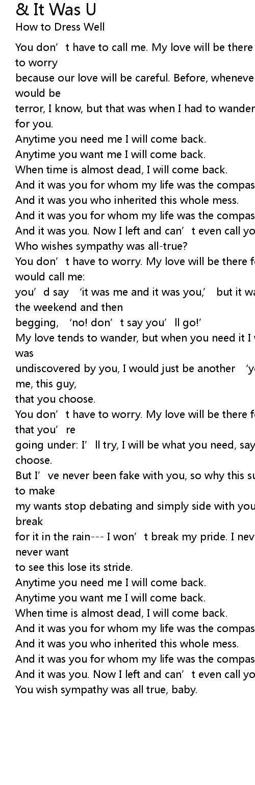 | You don' t have to call me. My love will be there for you. And you don' t have to worry | |