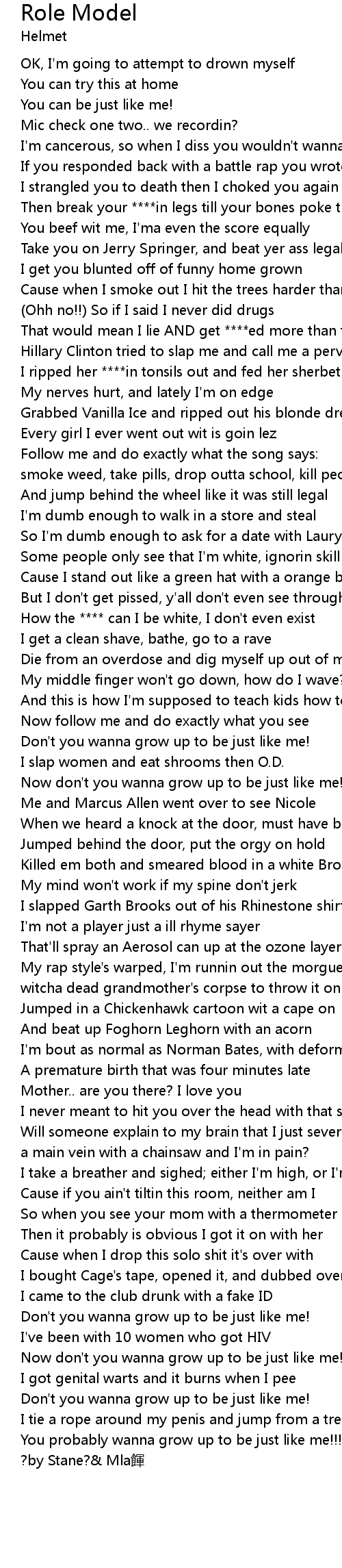 | [01:01.00] | smoke weed, take pills, drop outta school, kill people and drink |
