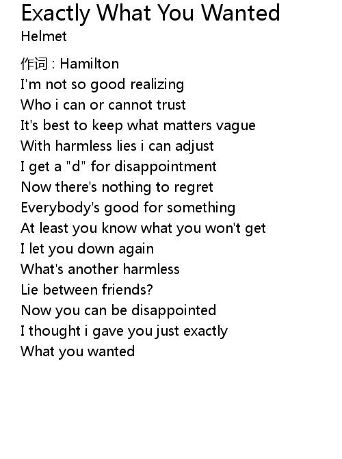 | Song | Exactly What You Wanted |