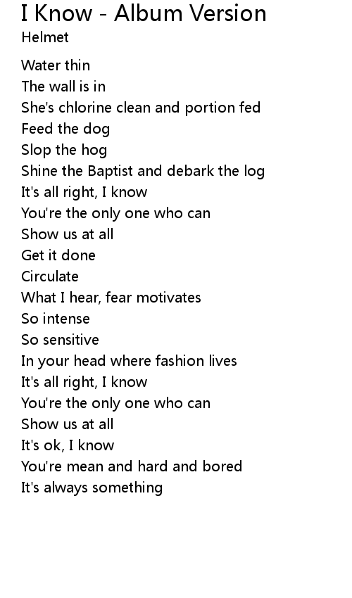 | It's all right, I know | |