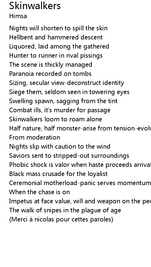 | Song | Skinwalkers |