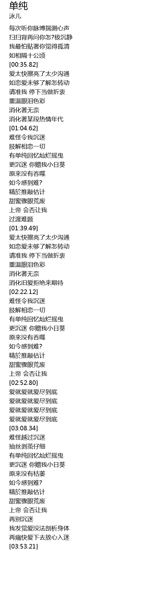 | [03:13.52] | yǒu dān chún huí yì càn làn yáo yè |