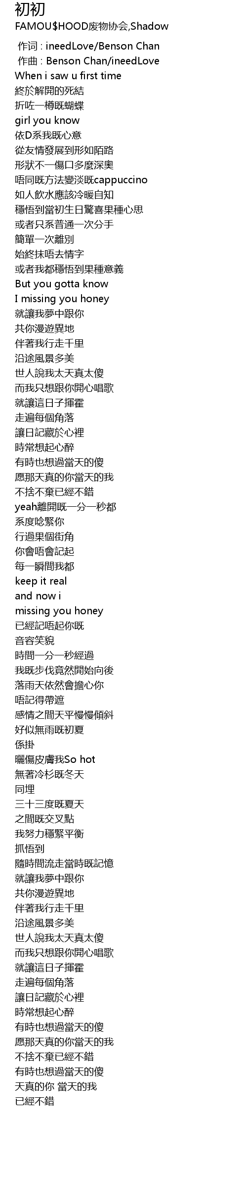 | [00:00.000] | 作词 : ineedLove/Benson Chan |