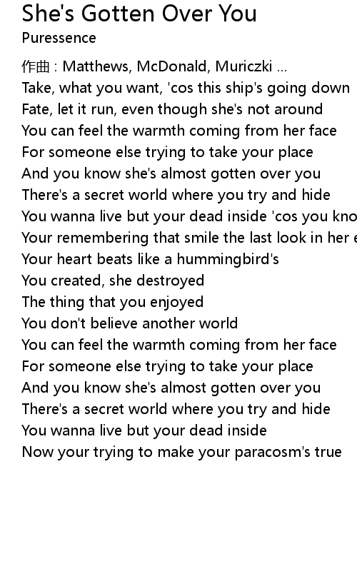 | You wanna live but your dead inside ' cos you know she' s almost gotten over you | |