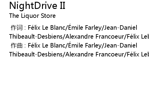 | [00:00.000] | 作曲 : Félix Le Blanc/Émile Farley/Jean-Daniel Thibeault-Desbiens/Alexandre Francoeur/Félix Leblanc Blackburn/Rémi Cormier |