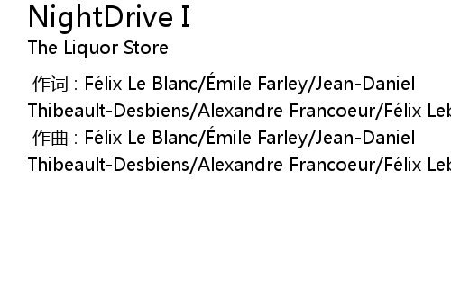 | [00:00.000] | 作词 : Félix Le Blanc/Émile Farley/Jean-Daniel Thibeault-Desbiens/Alexandre Francoeur/Félix Leblanc Blackburn/Rémi Cormier |
