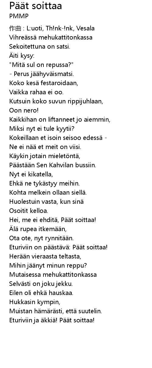 | zuò qǔ : L: uoti, Th! nk! nk, Vesala | |