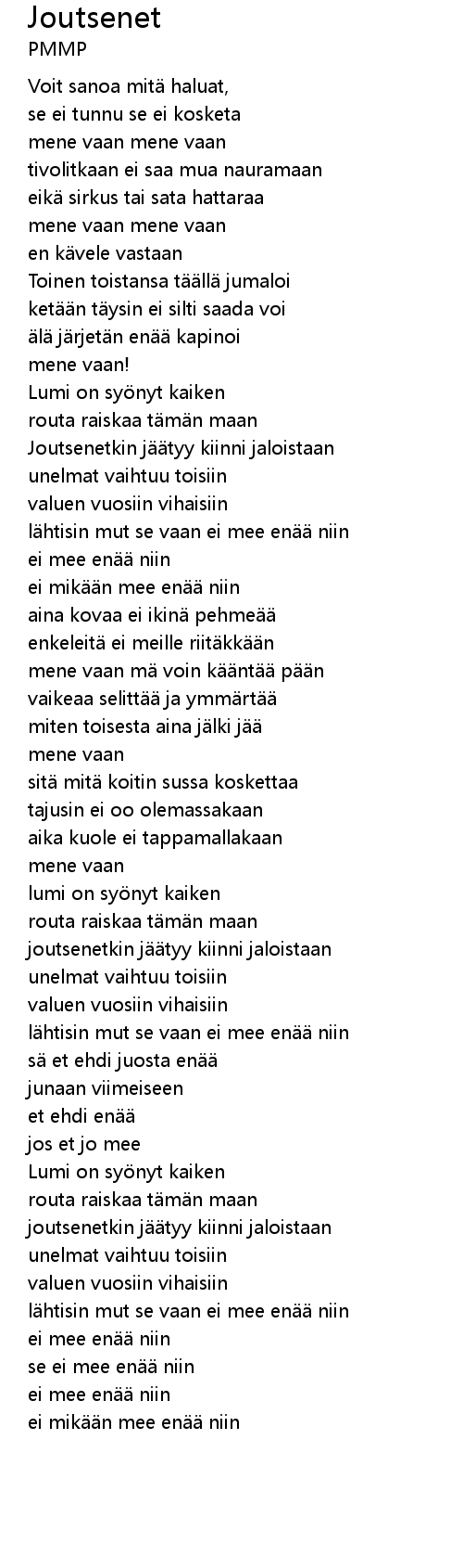 | Joutsenetkin j tyy kiinni jaloistaan | |