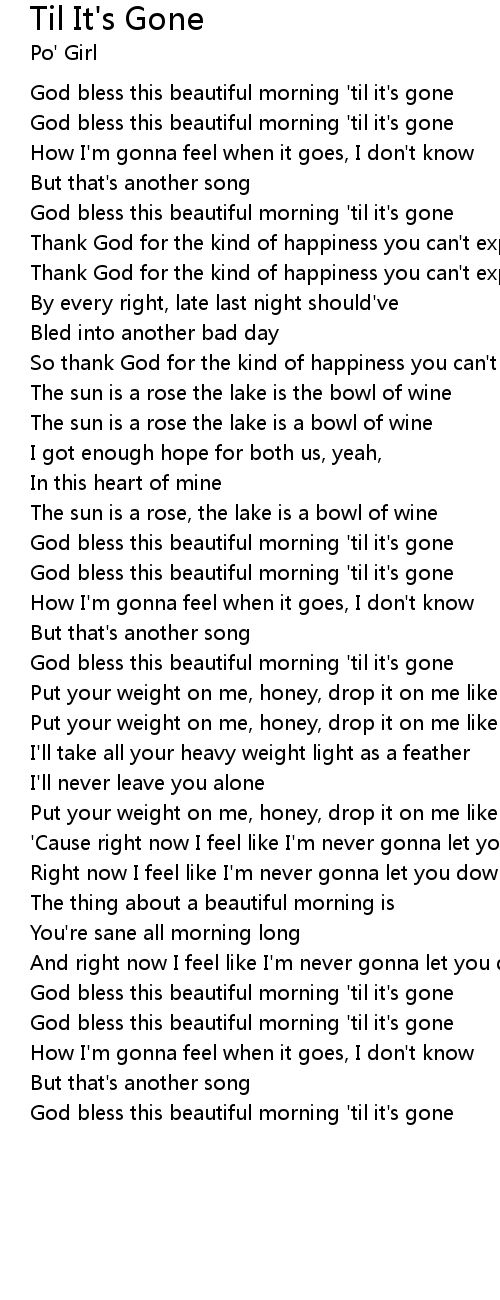 God bless this beautiful morning 'til it's gone |