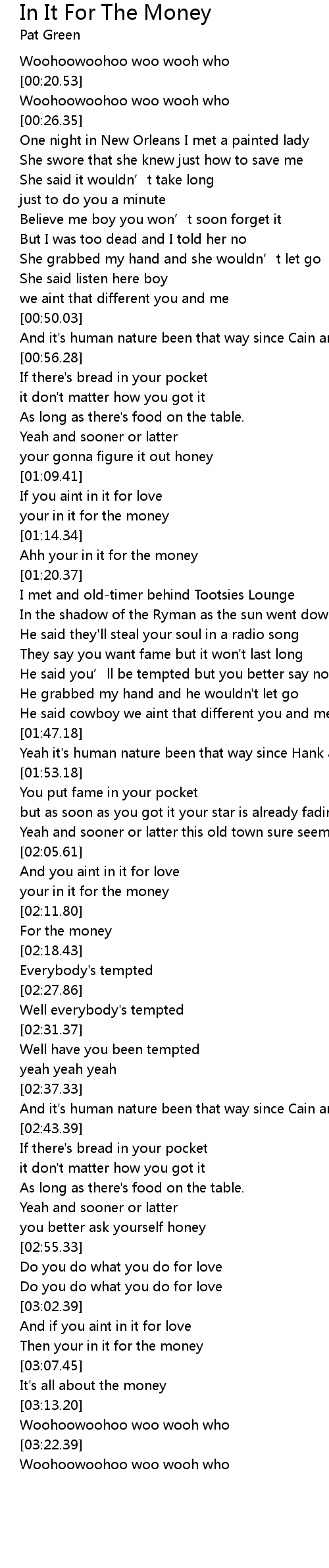 | [01:13.03] | your in it for the money |