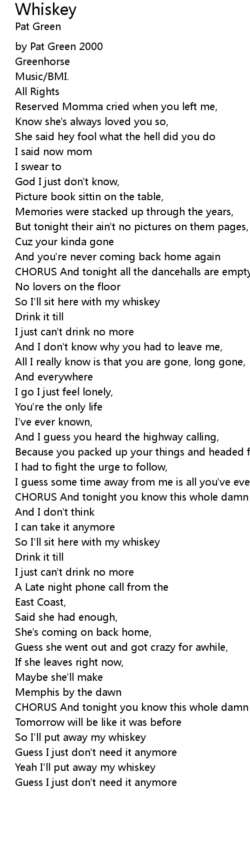 Yeah I'll put away my whiskey |