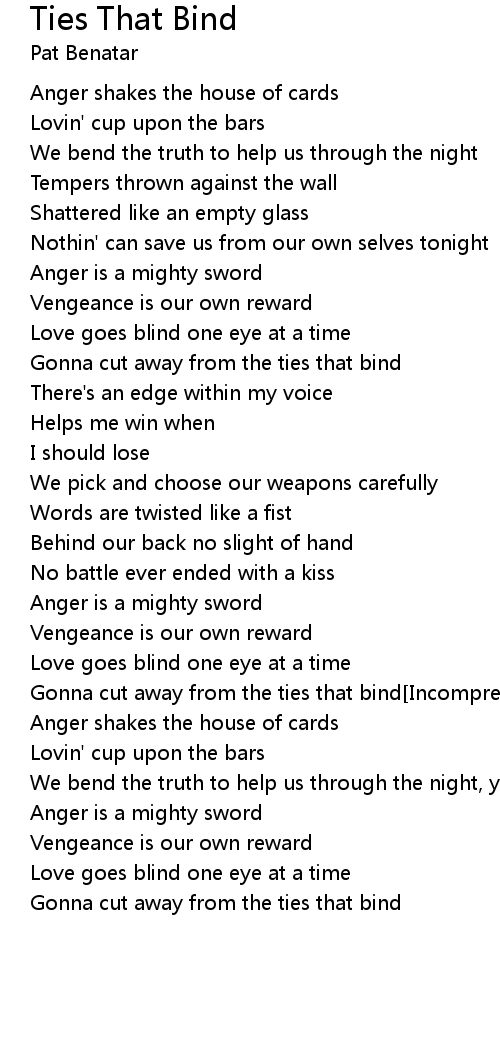 Gonna cut away from the ties that bind[Incomprehensible] |