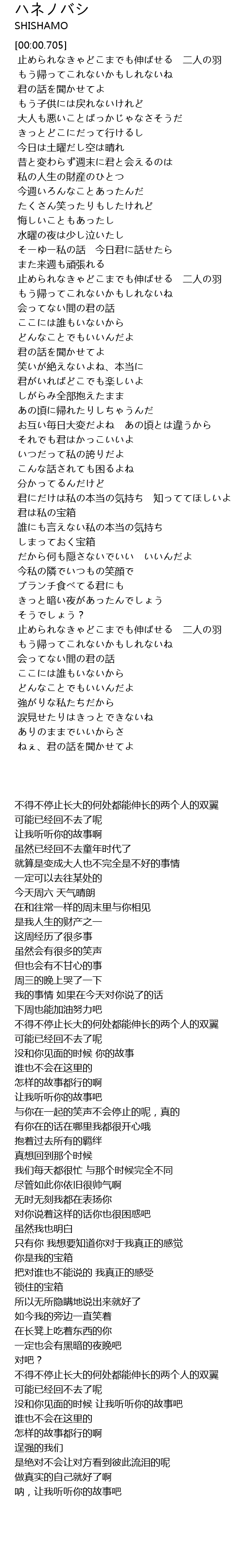 | [03:47.710] | 止められなきゃどこまでも伸ばせる 二人の羽 |