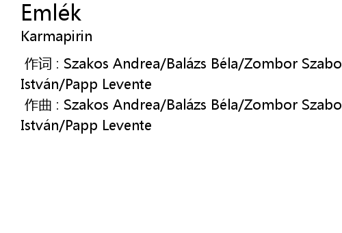 | [00:00.000] | zuò cí : Szakos Andrea Balá zs Bé la Zombor Szabolcs Kirá ly Istvá n Papp Levente |
