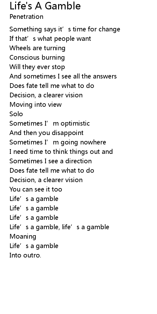 | Life' s a gamble, life' s a gamble | |