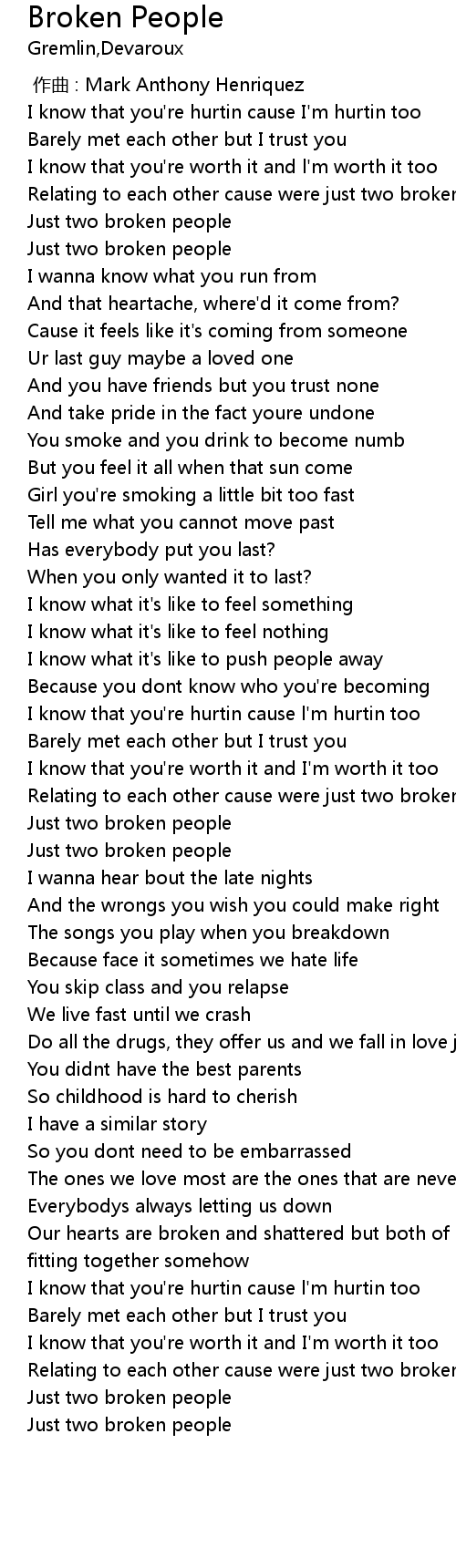 | [00:30.081] | Relating to each other cause were just two broken people |