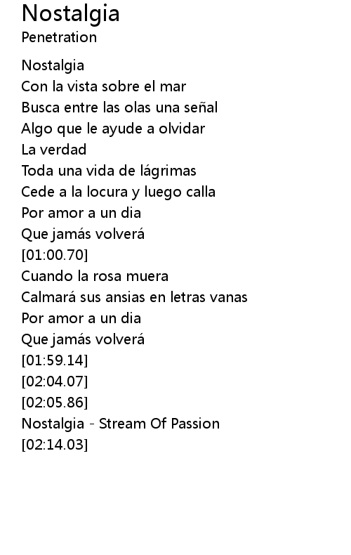 | [02:09.53] | Nostalgia Stream Of Passion |