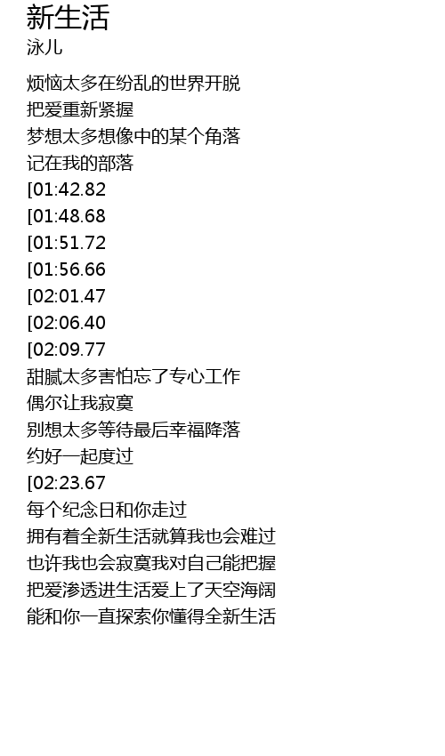 | [00:52.82][01:51.72][02:30.92] | 爱上新的生活简单的快乐 |