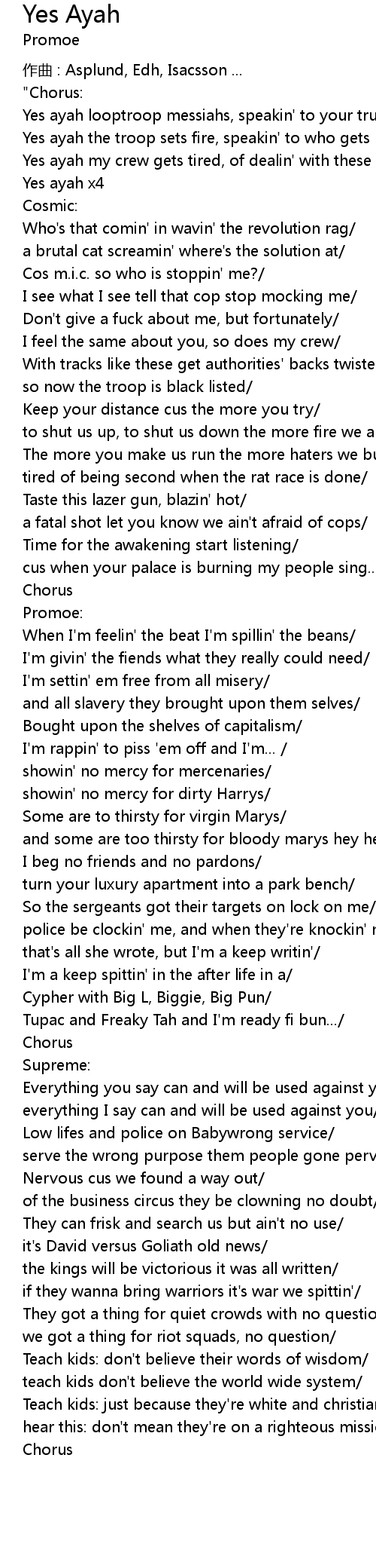 | Yes ayah looptroop messiahs, speakin' to your true desires/ | |