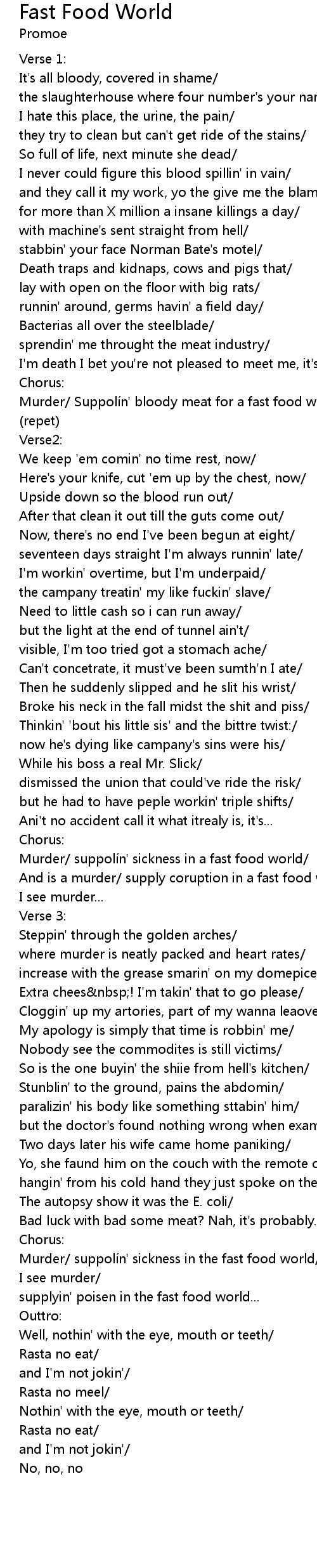 | Murder suppoli n' sickness in the fast food world | |