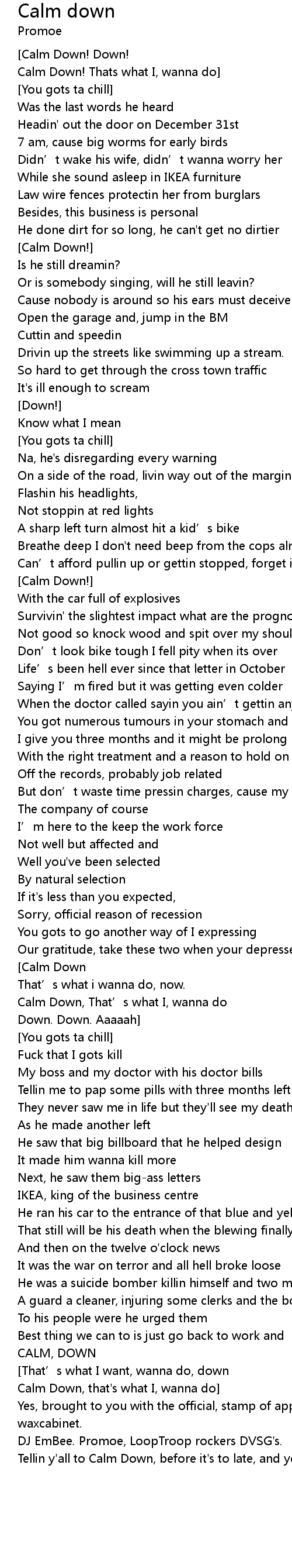 | Calm Down! Thats what I, wanna do] | |