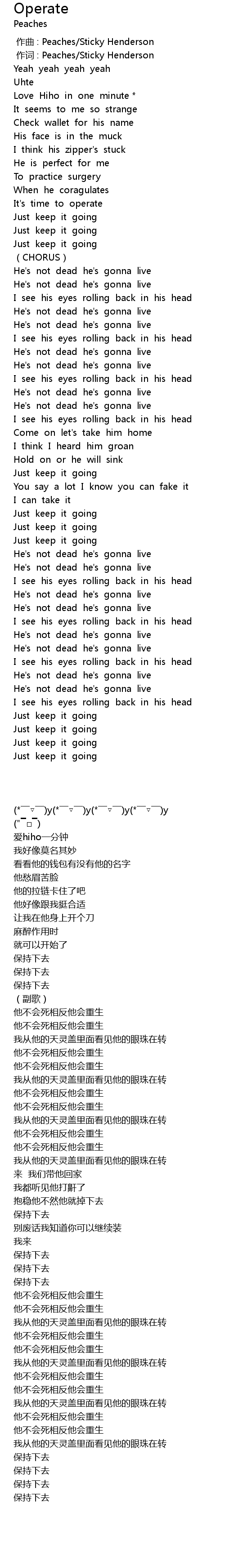| [00:00.884] | 作词 : Peaches/Sticky Henderson |