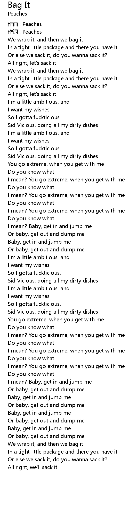 | 作词 : Peaches | |