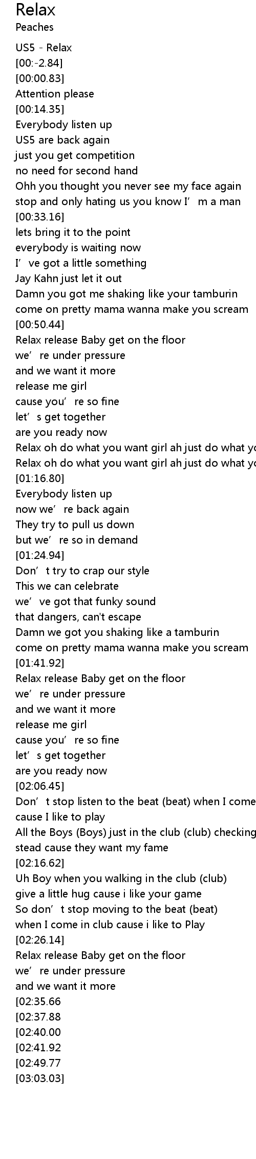 | [03:00.67][02:49.77][02:47.69][02:45.41][02:43.58] | Relax |