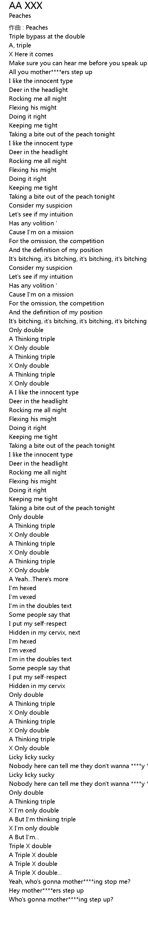 | Song | AA XXX |