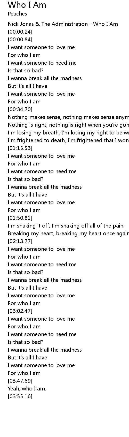 | [00:00.05] | Nick Jonas & The Administration - Who I Am |